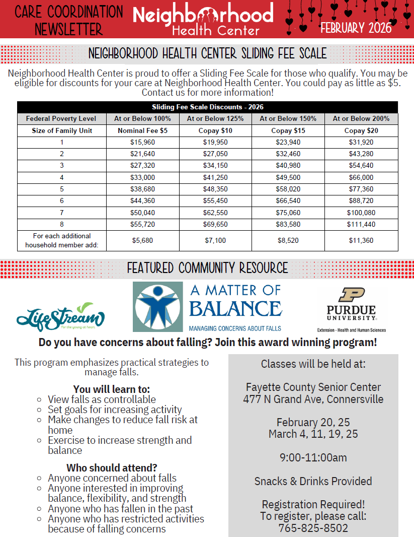 For more information, contact Carrie Miles at carrie.miles@neighborhoodhc.org or by calling the Neighborhood Health Center at 765-598-4300.
